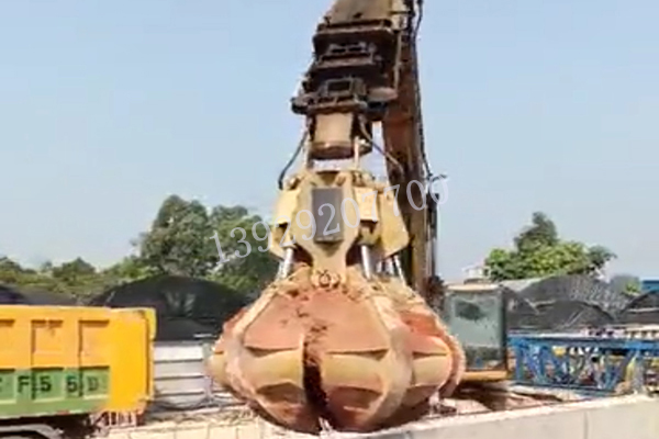 液压式抓斗本身装有开合结构,一般用液压油缸驱动,由多个颚板组成的液压式抓斗也叫液压爪。